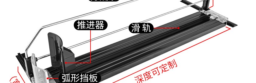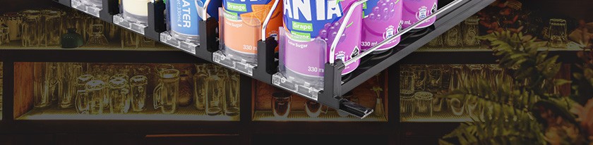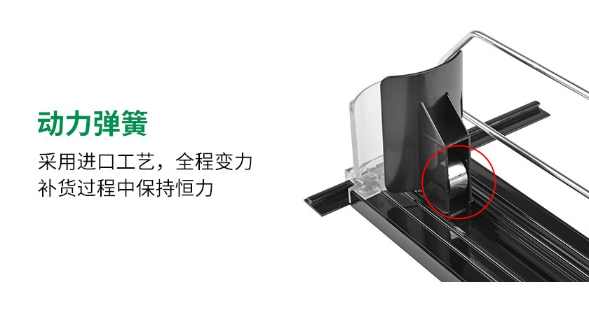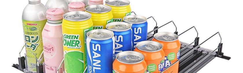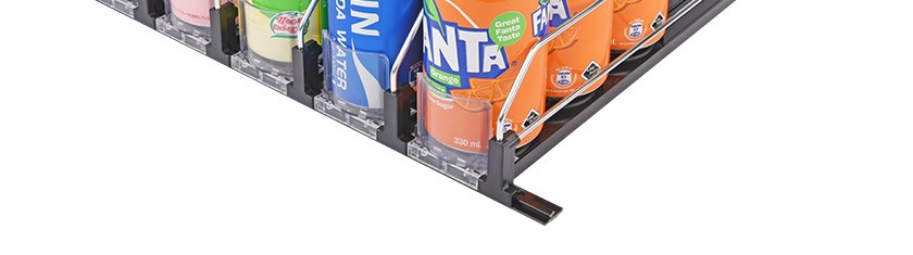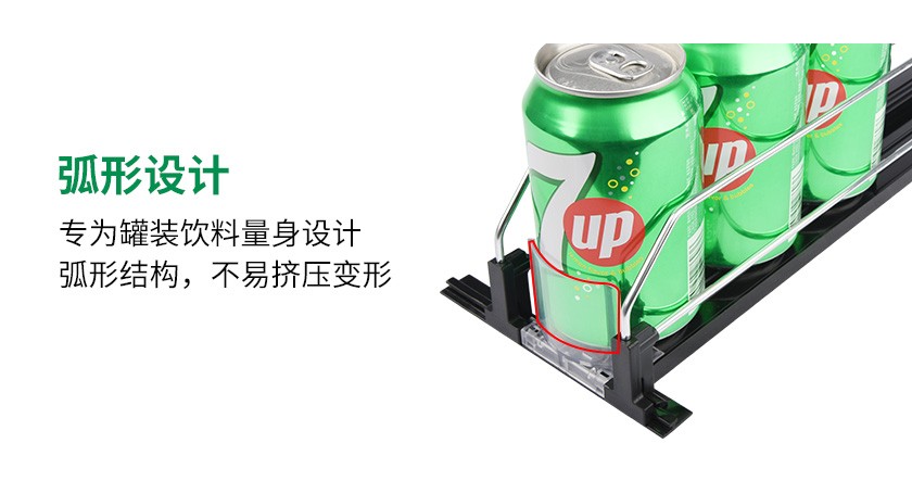 飲料款推進(jìn)器是導(dǎo)軌、推進(jìn)器,鍍鋅分隔條組裝而成的自動飲料推進(jìn)貨架。設(shè)計(jì)亮點(diǎn):
