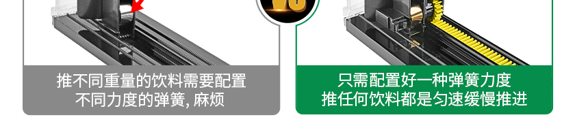 1、動力彈簧設(shè)計(jì):主要靠推進(jìn)彈簧推動,相比傳統(tǒng)的重力導(dǎo)軌推進(jìn)器,這款的設(shè)計(jì)無需傾斜就能推進(jìn)補(bǔ)貨;
