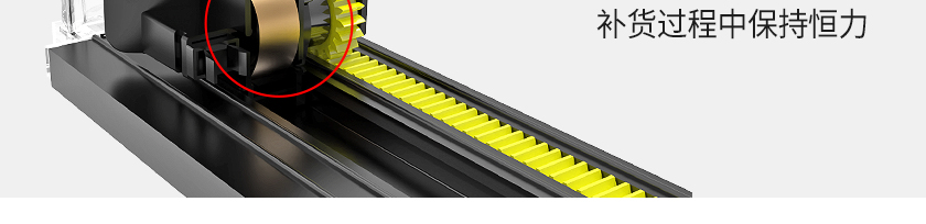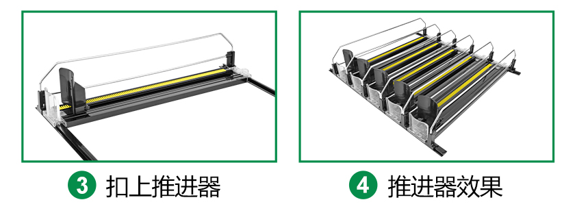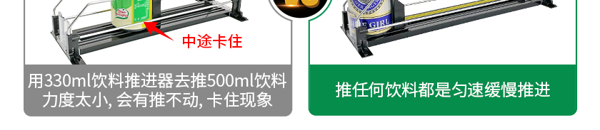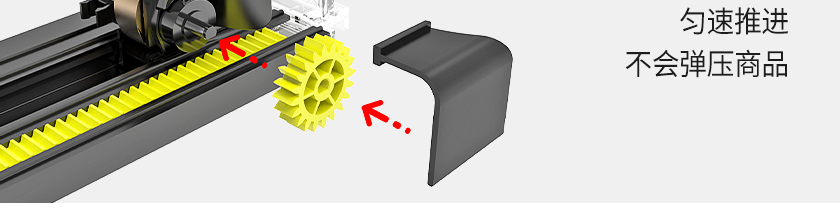 2、動力阻尼設(shè)計(jì): 推進(jìn)器帶阻尼緩沖,勻速推進(jìn),不用擔(dān)心推動過快而彈壓損壞商品;