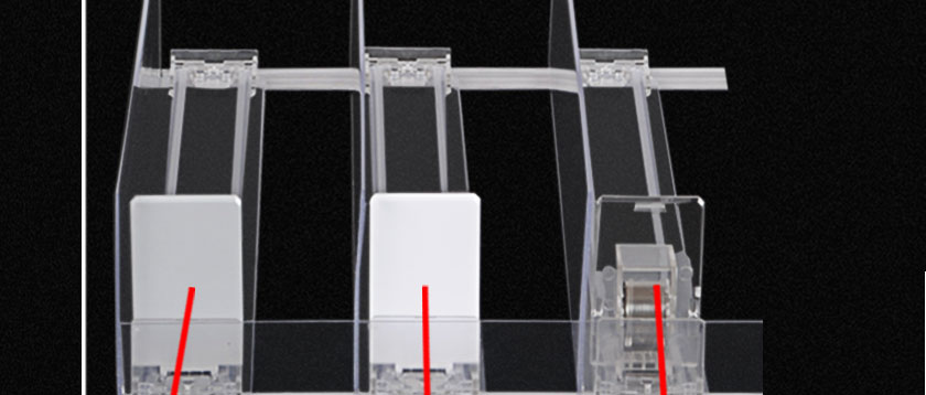 當(dāng)客人取走擺放在飲料推進(jìn)器上面的第一個(gè)商品后,后面的商品會(huì)自動(dòng)的往前推,始終讓商品展示在第一位,大大提升了商品的展示能力,不需要專門組織人工去整理貨物,節(jié)省人工和成本。