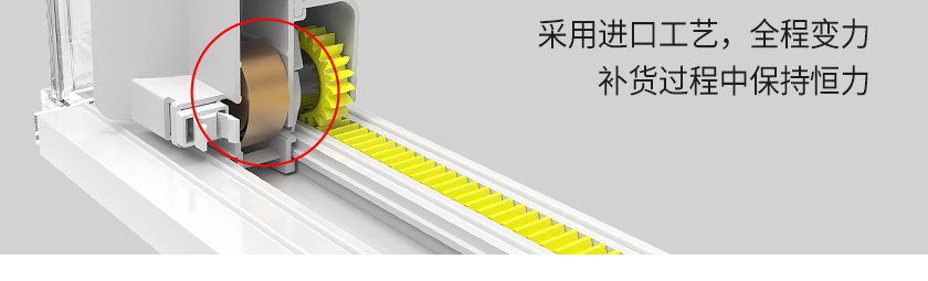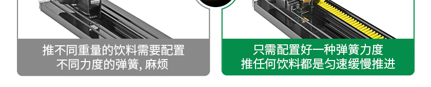 1、動(dòng)力彈簧設(shè)計(jì):主要靠推進(jìn)彈簧推動(dòng),相比傳統(tǒng)的重力導(dǎo)軌推進(jìn)器,這款的設(shè)計(jì)無需傾斜就能推進(jìn)補(bǔ)貨;