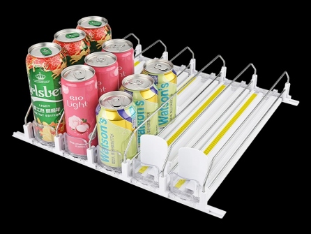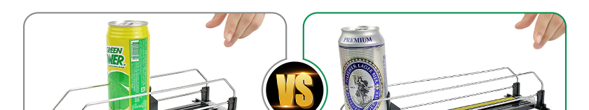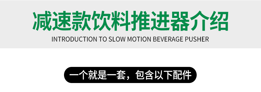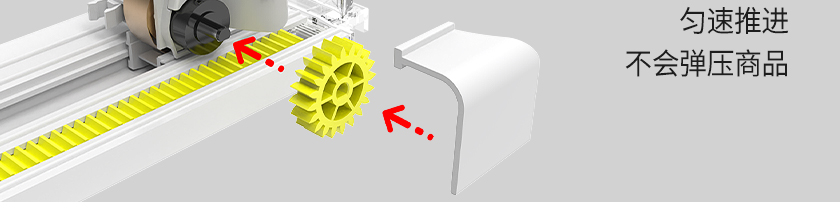顧名思義就是常規(guī)飲料推進(jìn)器上面加裝阻尼減速裝置,并搭配齒輪,齒條而成的一種可以自動(dòng)緩慢勻速推進(jìn)的貨架推進(jìn)器。