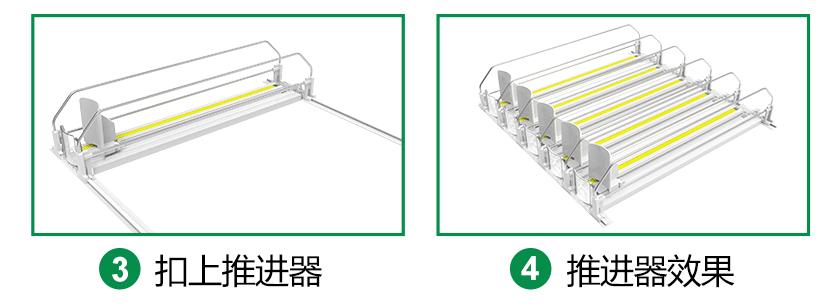 2、動(dòng)力阻尼設(shè)計(jì): 推進(jìn)器帶阻尼緩沖,勻速推進(jìn),不用擔(dān)心推動(dòng)過快而彈壓損壞商品;