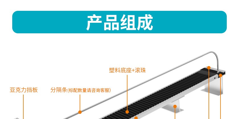 貨架自動滑道是指把滑軌、前后固定條、擋板和分隔條組裝在一起的貨架展示架,在3-5°傾斜角度下,商品利用之身重力自動滑向前端,實現(xiàn)自動理貨的功能。