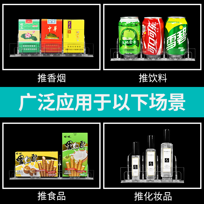 購樂得從事推煙器行業(yè)十多年,已經(jīng)是一家成熟的推煙器生產(chǎn)廠家了,十多年一直不斷的在開發(fā)新品,所以產(chǎn)品種類齊全,能夠很好的滿足不同客戶的不同需求。就拿其中的一款組合款推進器來說,可以適用于香煙、化妝品、飲料、食品餅干等,這款產(chǎn)品的特點在于其固定條、推進器和分隔板是裝在一起,和其它的款式比較而言,組合款結(jié)構(gòu)牢固,不易變形。