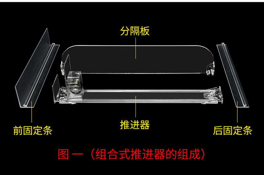 購樂得是一家貨架推進(jìn)器品牌,它在業(yè)內(nèi)有著舉足輕重的地位,市場占有量頗高,這自然是得益于它的新奇行及實(shí)用性,但款式的多樣性也是不可或缺的關(guān)鍵因素。購樂得是具備研發(fā)能力的創(chuàng)業(yè)型品牌,品牌成立以來研發(fā)設(shè)計(jì)出了多款形式功能不一的推進(jìn)器,其中飲料推進(jìn)器和組合式推進(jìn)器更是熱門款式,購樂得能夠賣到街知巷聞,這兩款產(chǎn)品功不可沒。組合式推進(jìn)器由前后固定條、推進(jìn)器、分隔板組合而成,使用時(shí)需要前后固定條上的膠紙固定在層板上,因分隔板能調(diào)節(jié)寬度而廣泛應(yīng)用。