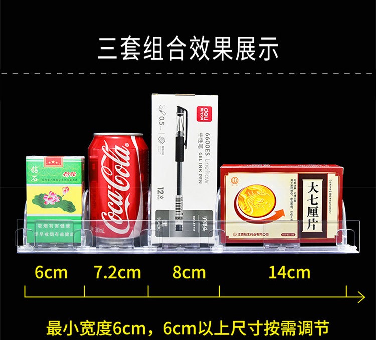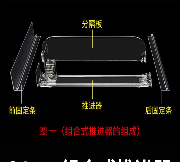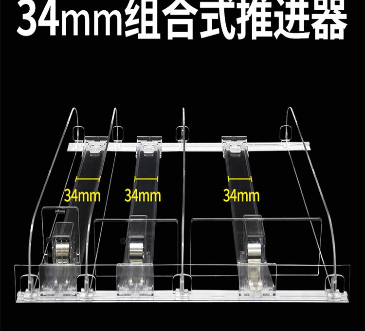貨架推進器并不止是在香煙上使用,在食品、飲料以及化妝品等商品上均能用到,而購樂得的推進器更是業(yè)內(nèi)的精品,尤其是其中的“組合款”,它是由推進器和分隔板組裝在一起的自動推進貨架,也被稱為香煙推進器是因為它常用在香煙貨柜上。此款推進器與普通的推進相比,具有結(jié)構牢固,不易變形的特點,其分隔板“組合式”的結(jié)構,無需開模即可做任意的尺寸,解決了不同貨柜不同尺寸香煙不同寬度需要開模定做的窘境,是廣大便利店主非常喜愛的一款推進器之一。