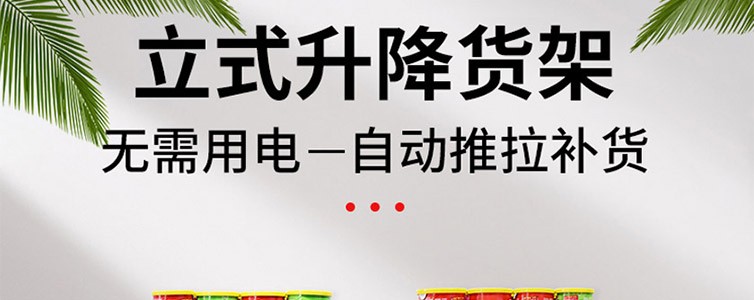 立式升降貨架的主體由鐵架焊接而成,在經(jīng)過(guò)特定的裝置搭配2條變力發(fā)條和4塊3mm的PP版組裝而成,當(dāng)客人取走擺放在立式升降貨架上面的第一個(gè)商品后,后面的商品會(huì)自動(dòng)的往前推,始終讓商品展示在第一位,大大提升了商品的展示能力,不需要專門組織人工去整理貨物,節(jié)省人工和成本,因變力發(fā)條的特性(即所有的行程里面都可以按要求設(shè)計(jì)發(fā)條不同行程段的拉力),不會(huì)因?yàn)樯唐诽伲^(guò)大而彈壓壞商品。