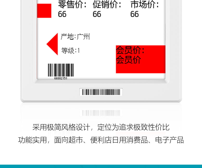 1.節(jié)省成本:取代傳統(tǒng)的貼紙方式,使用EPD電子紙變換價格,節(jié)省人工和打印貼紙成本。