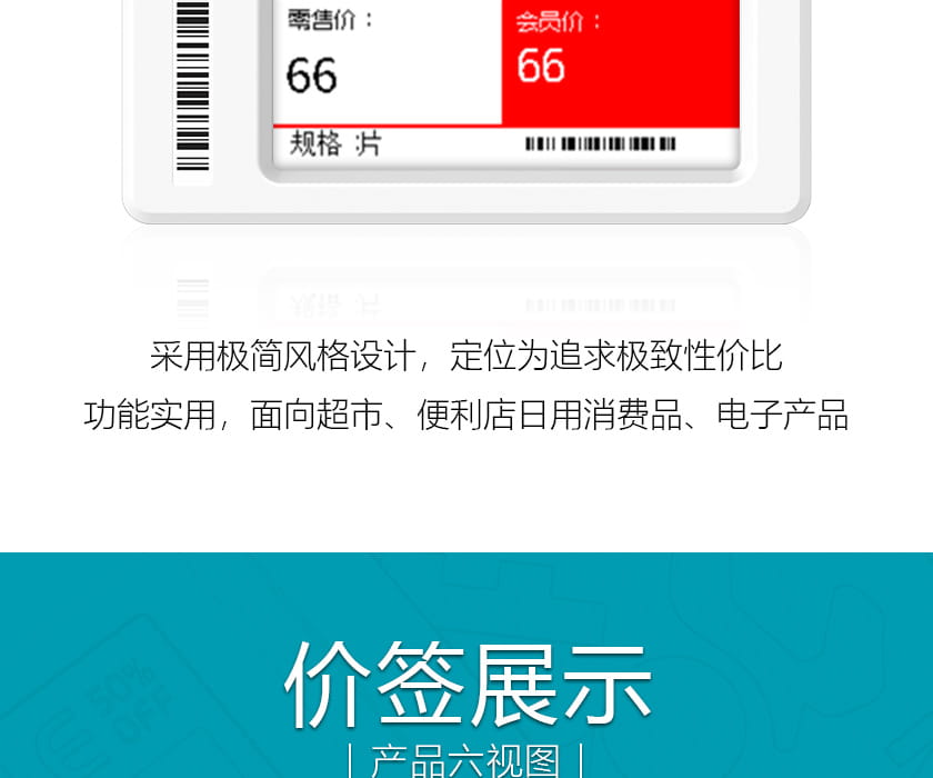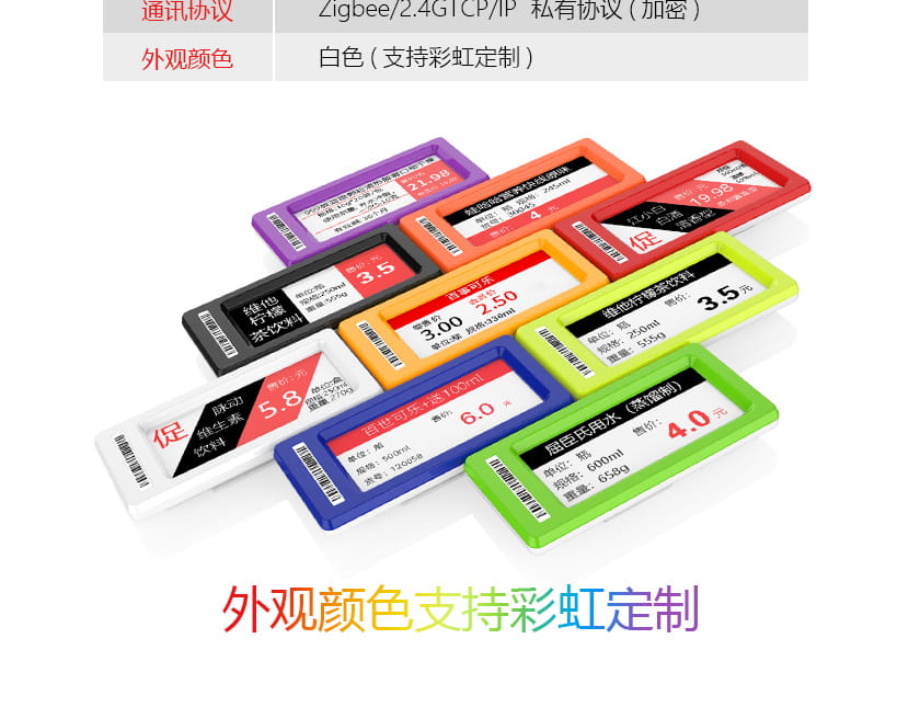 電子價簽,也叫電子貨架標簽(Electronic Shelf Label,ESL),是一種帶有信息收發(fā)功能的電子顯示裝置,主要應(yīng)用于超市、便利店、藥房等顯示價格信息的電子類標簽。放置在貨架上,可替代傳統(tǒng)紙質(zhì)價格標簽的電子顯示裝置,每一個電子貨架標簽通過有線或者無線網(wǎng)絡(luò)與商場計算機數(shù)據(jù)庫相連,并將最新的商品信息通過電子貨架標簽上的屏顯示出來。電子貨架標簽事實上成功地將貨架納入了計算機程序,擺脫了手動更換價格標簽的狀況,實現(xiàn)了收銀臺與貨架之間的價格一致性。
