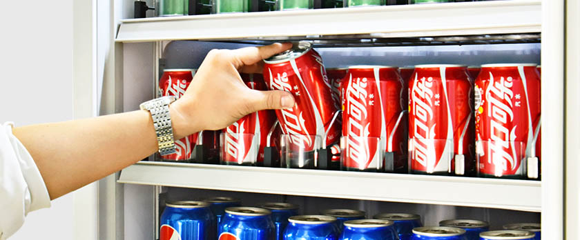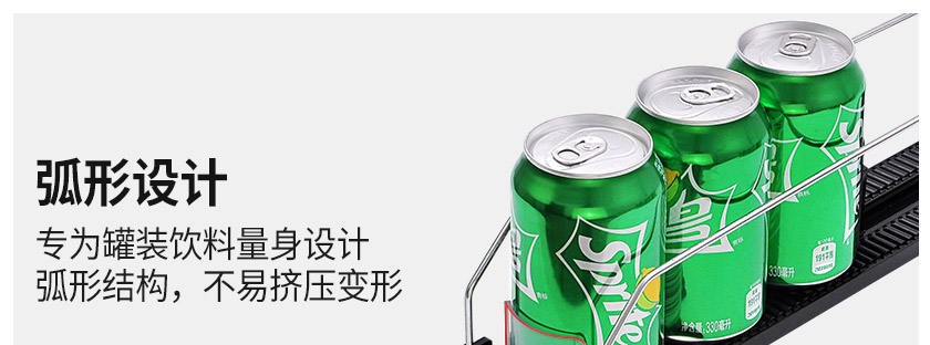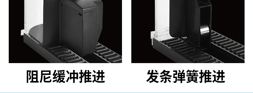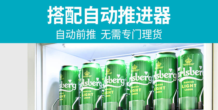 當客人取走擺放在冰柜上面的第一個商品后,后面的商品會自動的往前推,始終讓商品展示在第一位,大大提升了商品的展示能力,不需要專門組織人工去整理貨物,節(jié)省人工和成本。