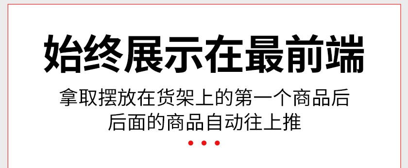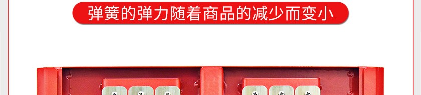 1、變力彈簧推動:隨著商品的減少力度變小,隨著商品的增加力度加大,始終保持相同的彈力;