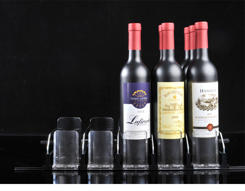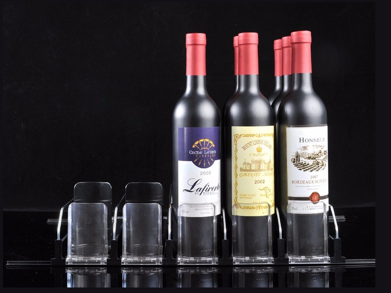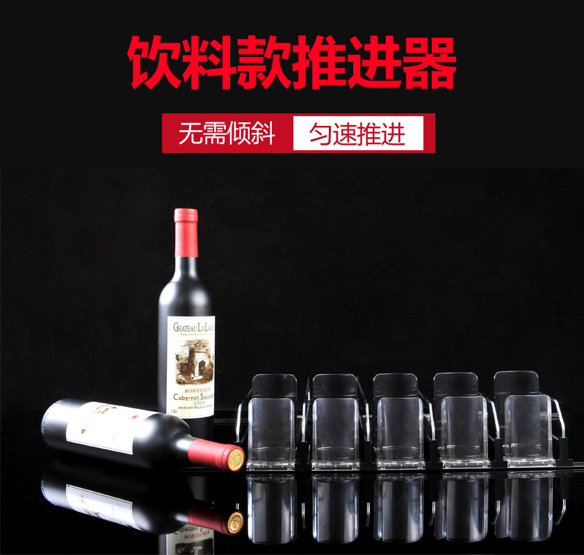 當(dāng)客人取走擺放在紅酒推進器上面的第一個商品后,后面的商品會自動的往前推,始終讓商品展示在第一位,大大提升了商品的展示能力,不需要專門組織人工去整理貨物,節(jié)省人工和成本。