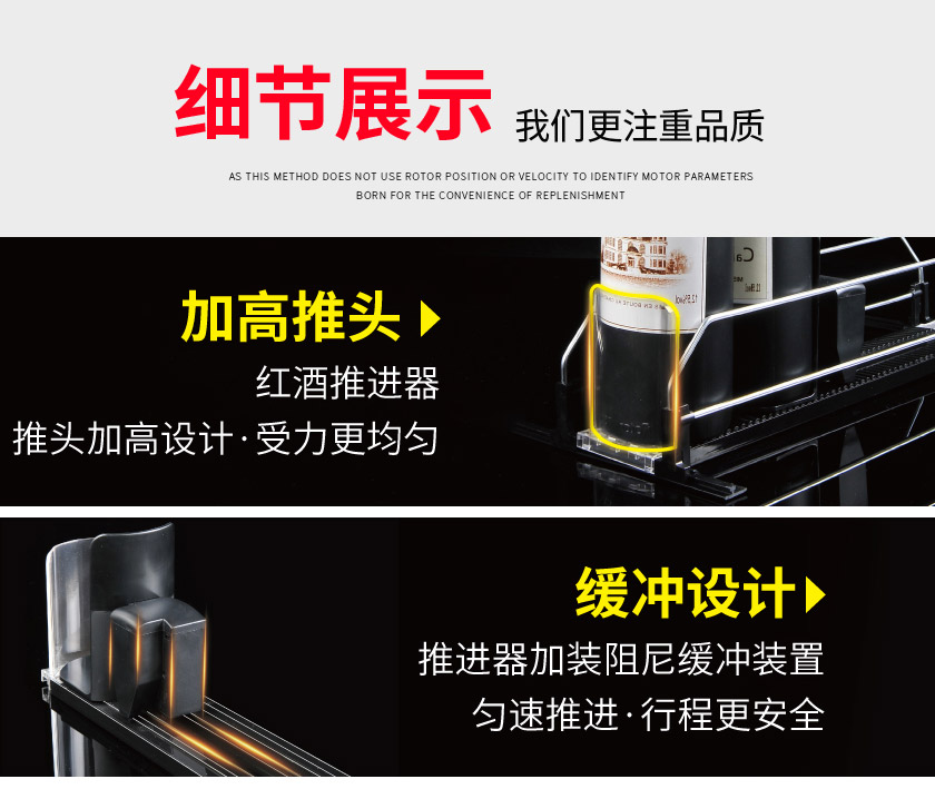 3、定位設(shè)計:紅酒推進器自帶定位設(shè)計,上貨更方便;