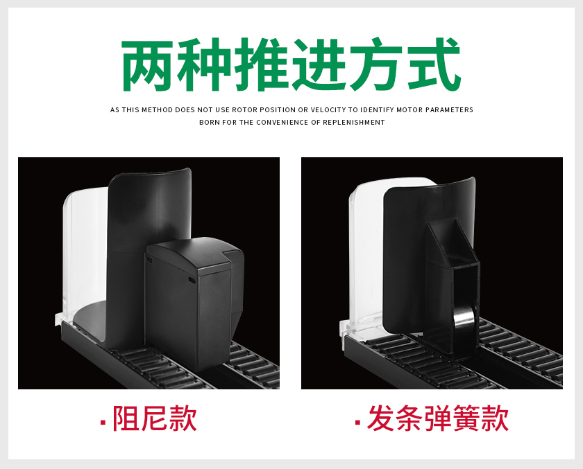 3、動(dòng)力阻尼設(shè)計(jì): 推進(jìn)器帶阻尼緩沖,勻速推進(jìn),不用擔(dān)心推動(dòng)過(guò)快而彈壓損壞商品;